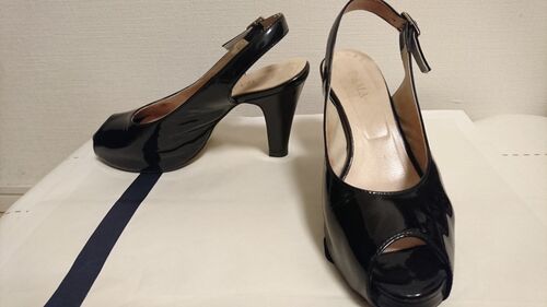 dinos DAMA エナメルパンプス またしてもdinosのDAMAですが、 このパンプス、とても気に入りまして2足目の購入です。 ヒール高が10センチですが、ストームが2センチあるのでとても楽。 ヒールの太さもそこそこあり安定感もあります。 エナメルは生地…